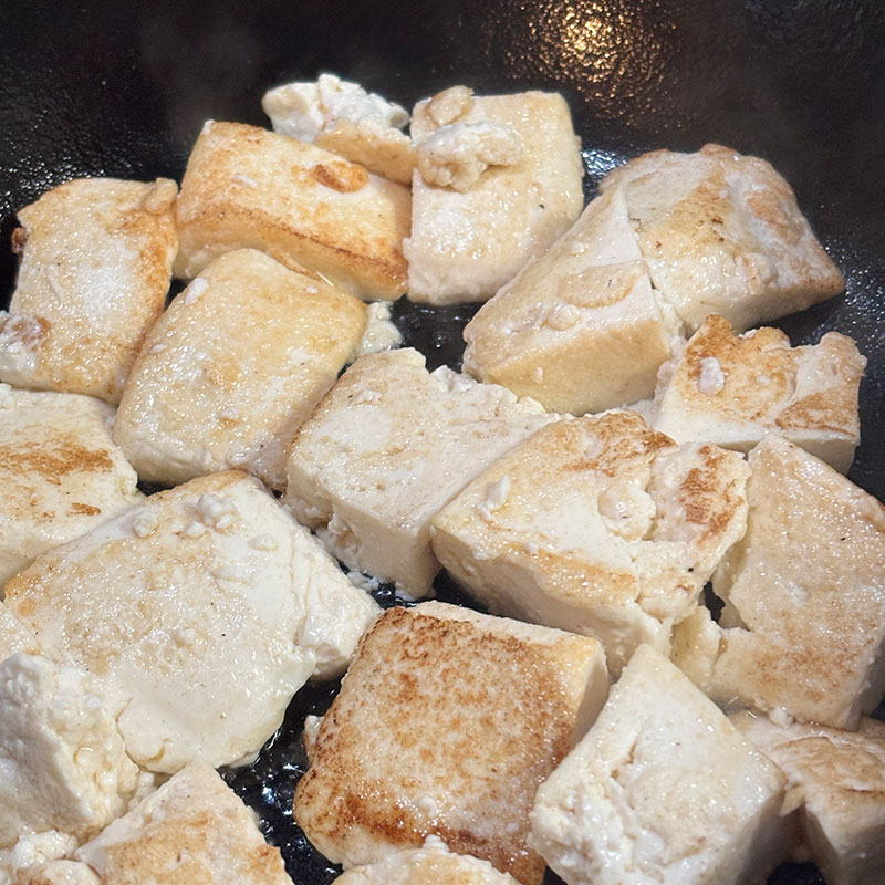 チャンプルーの豆腐は水切りしてしっかり焼き目がつくまで炒めると旨い。