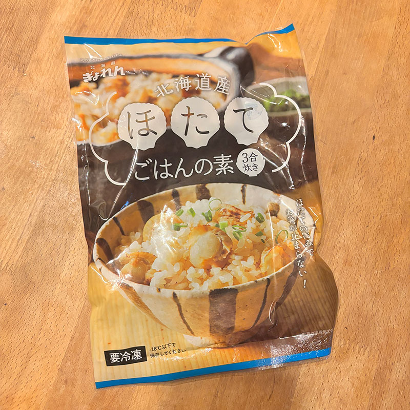 昼飯。カミさんが産直広場あぐりっとでおすすめされたってほたてご飯の素買ってきた。