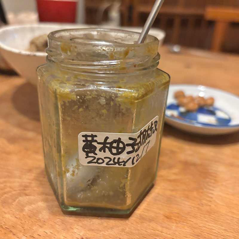 去年作って一年熟成した柚子胡椒やゆずポン酢で風味付け。