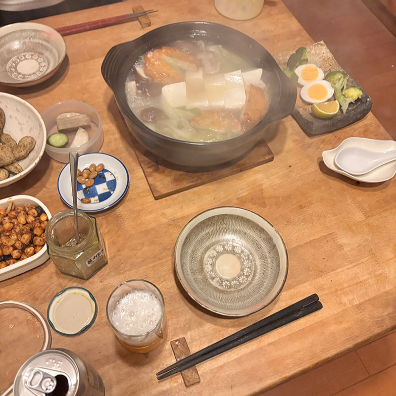 居酒屋我家、開店。今季初鍋。昆布と干し椎茸からとった出汁に塩麹で味付けして。