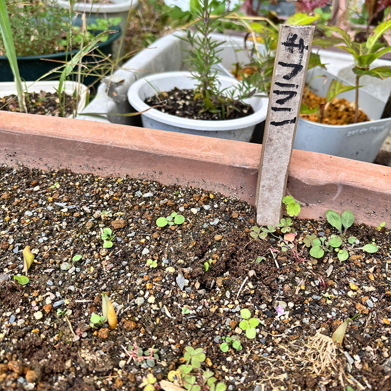 わずかに残ったものをプランターにいくつか植えてみたところから芽が出てる・嬉!