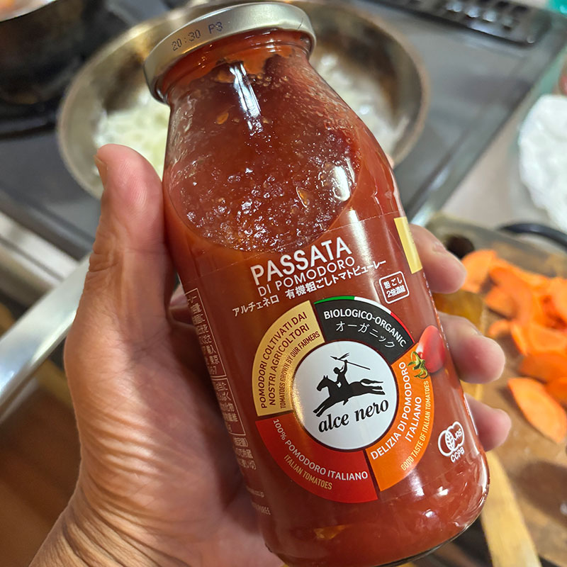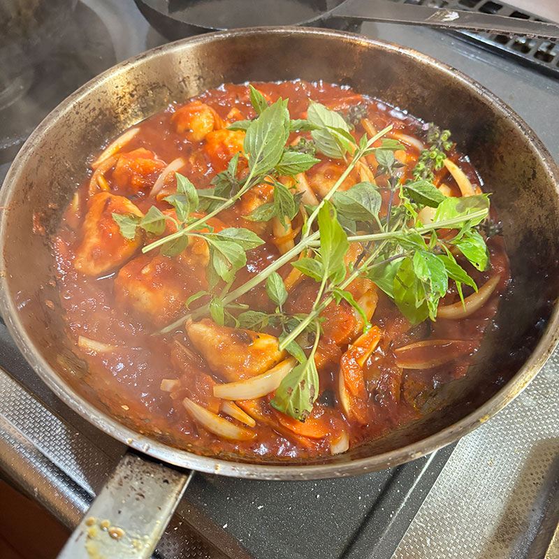 姪っ子の結婚式の際にお土産にもらったイタリアのトマトピューレを使って鶏むね肉のトマト煮作った。