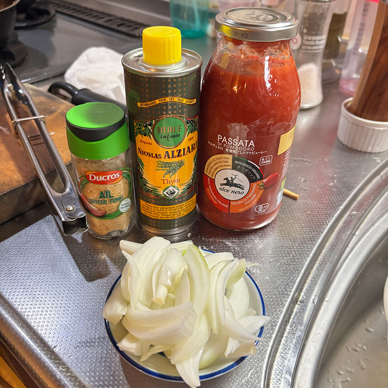 妹家族にもらった海外旅行のお土産の燻製ニンニクパウダーを下味付けに使ってオイルにはタイム入りのオリーブオイルを使って。