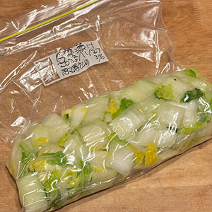採りたての白菜と春菊いただいた。 別の方からは自然薯を掛け合わせた山芋。山芋すりおろしたらまるで餅のような粘り。うまー。 白菜は農薬使ってないから虫に気をつけてって言われたけどその方が嬉しい。 早速半分を漬け物に仕込んだ […]