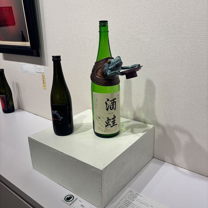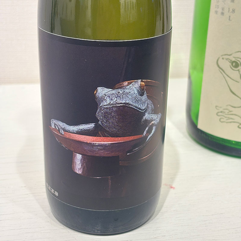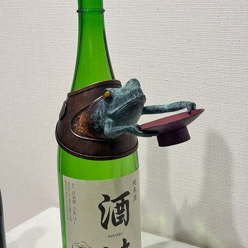 日本酒のボトルに蛙