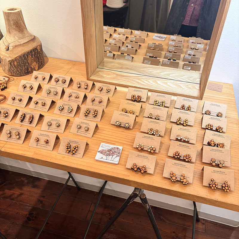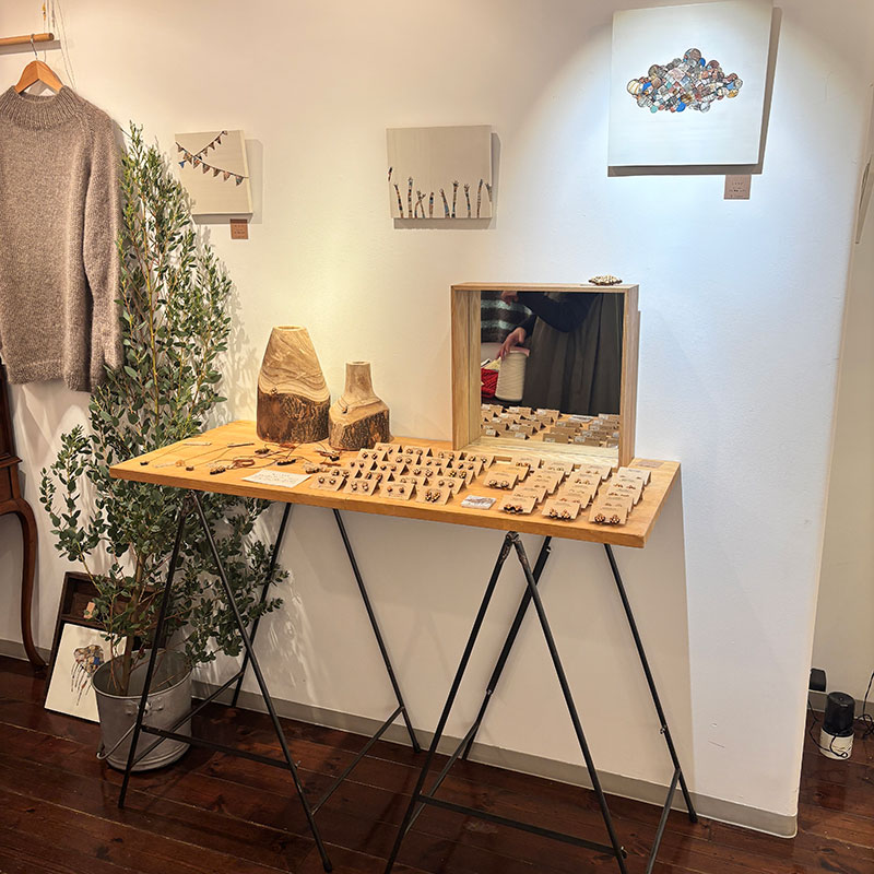 小さな石や小枝を素材としたアクセサリーも素敵で