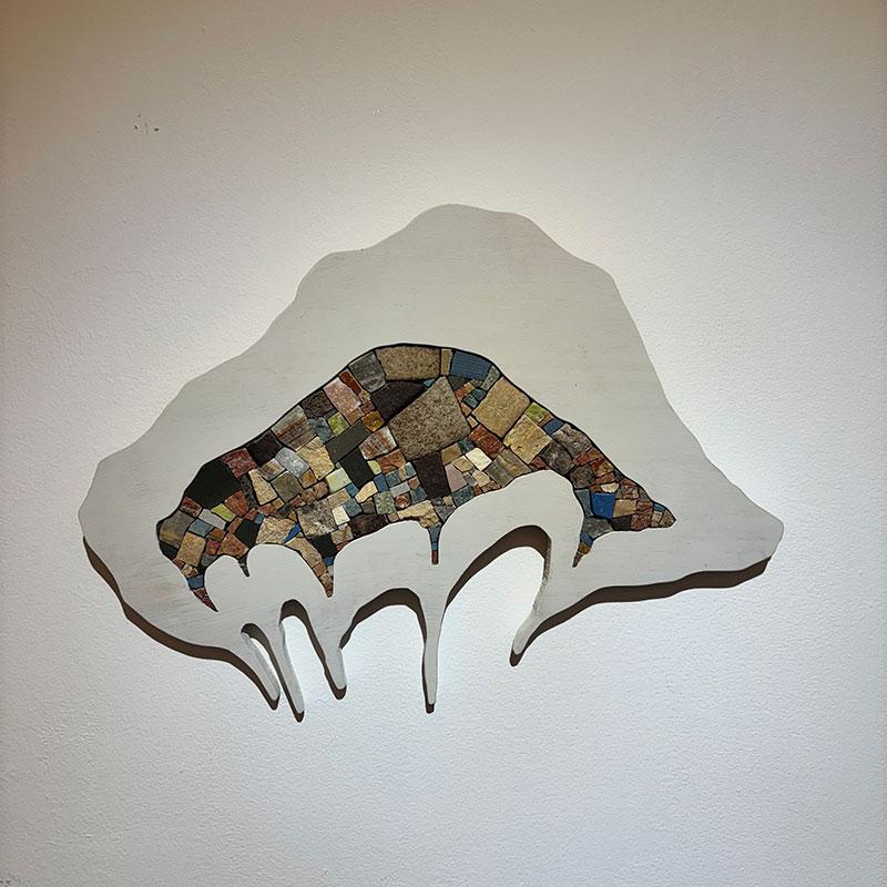 板石を割ってそれぞれのパーツを加工して再構成する僕の”彩分割石”のシリーズはヒラタエリコさんのモザイクの作品から着想したものです。断じて真似ではなくオマージュですw!!