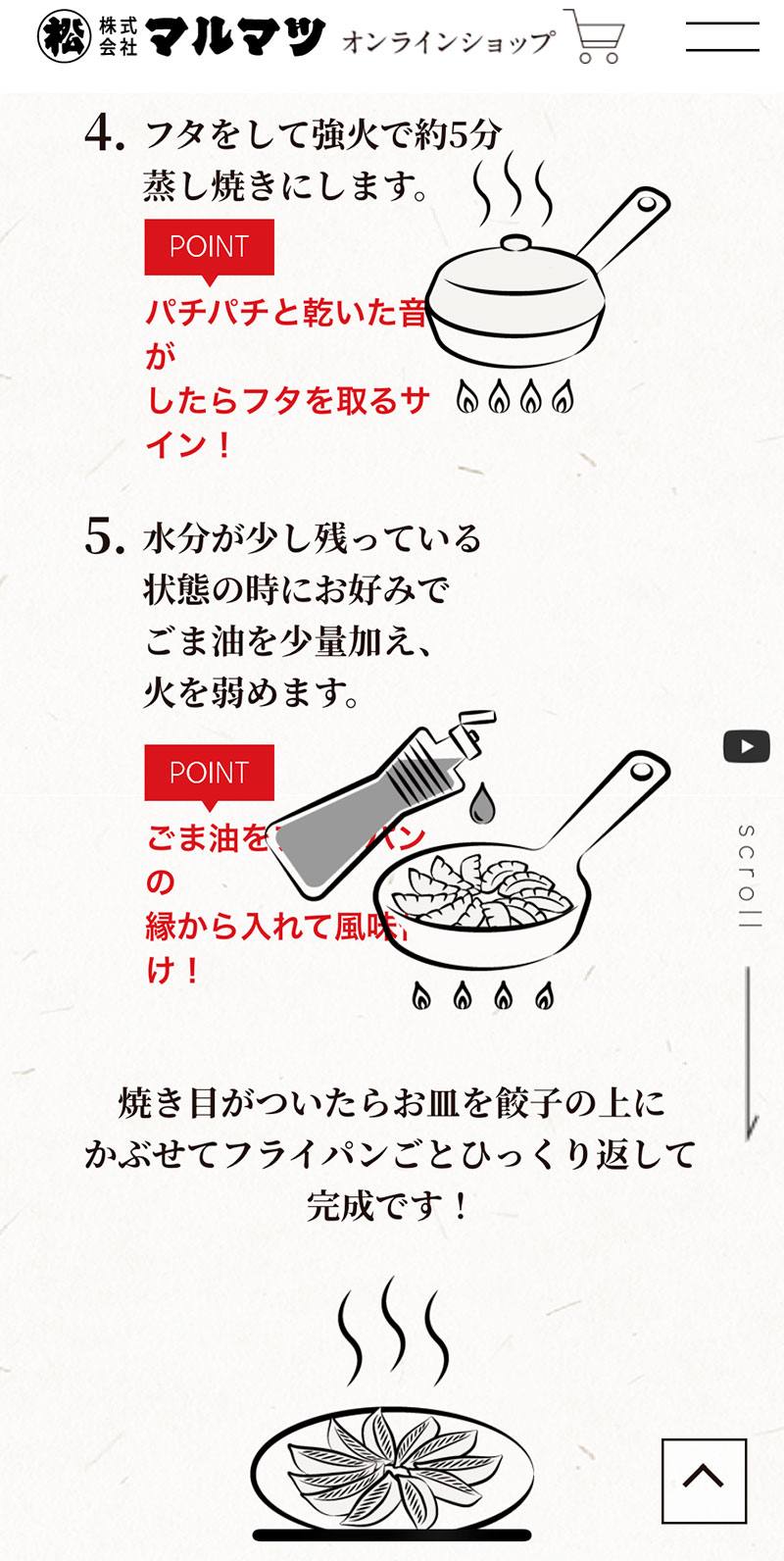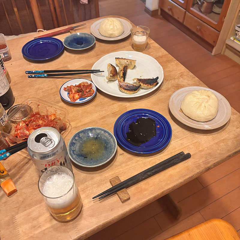 家で餃子を焼くのは僕の係で基本羽付き餃子を焼いてるんだけど、初めてのマルマツの餃子だったので公式サイトの説明通りに焼いたら焦げた。強火で5分とあってこれじゃ絶対焦げると思ってたらやっぱり。