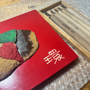 彩分割石にサイン 石の制作依頼があって打ち合わせに行ってきた。先日終わった仙台での個展で数点、作品をお求めいただいた方。その中の、伊達冠石を割ってそれぞれのパーツを磨いたり着色したり金色の箔を貼ってから元の形に再構成して木の枠に嵌め込んだ […] もっと読む » 2025年12月6日 | コメントはまだありません | カテゴリー: 三日坊主日記