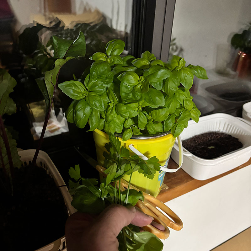 スイートバジルと違って山盛り食べても苦くなくて美味しい。