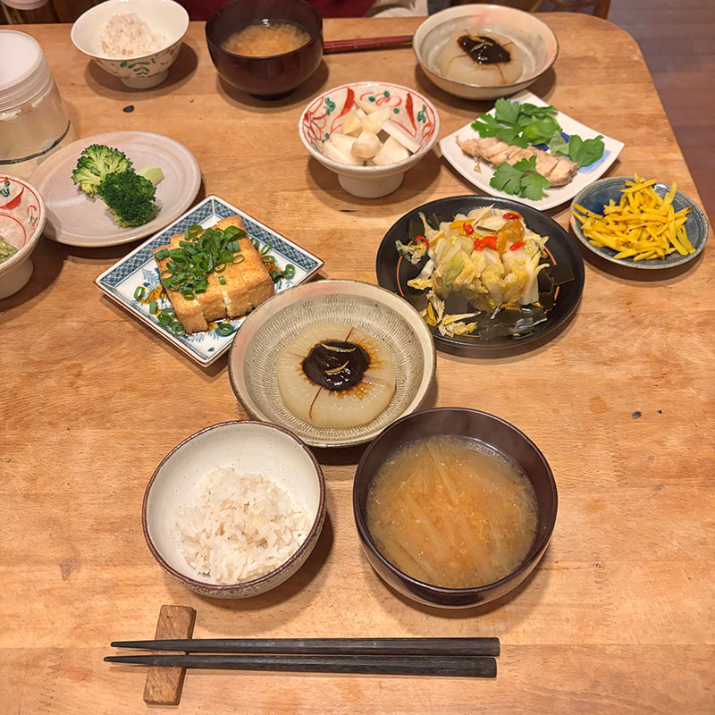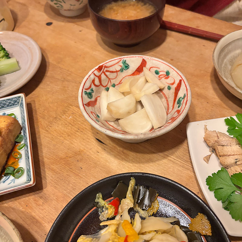 ホーリーバジル満開 水栽培コーナー。冷蔵庫に入れる時に抜いたキャベツの芯からこんなにこんもり新しい葉。 ホーリーバジルの花が満開 ハイドロボールで育ててるビーツ。ちゃんと球になってくれる可能性は低そうだけど少し膨らんできた。 もしボルシチが作れた時のためにディルも水栽培中。 今季最初の白菜漬け、これで終わり。樽に第二陣も控えてるので食べ終わっても大丈夫。 風呂吹き大根を八丁味噌のタレと柚子皮で。 カブのぬか漬け。 肉厚の揚げ焼き。クリスマス感ゼロの我が家の夕食。 2025年12月25日 | コメントはまだありません | カテゴリー: 三日坊主日記