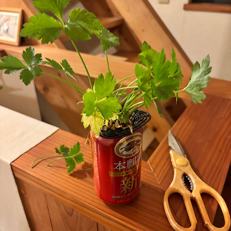 水栽培の三つ葉がよく育ってるので