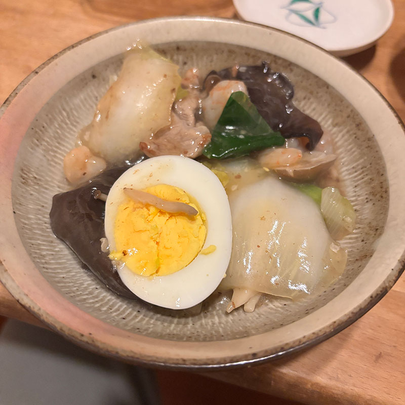 キクラゲとゆで卵たっぷり。