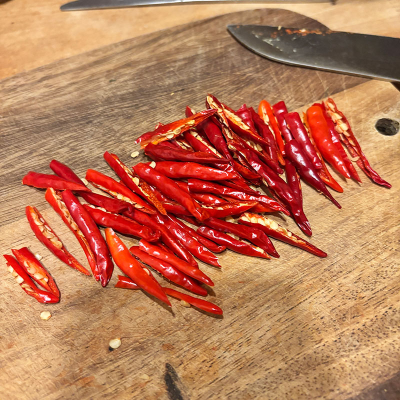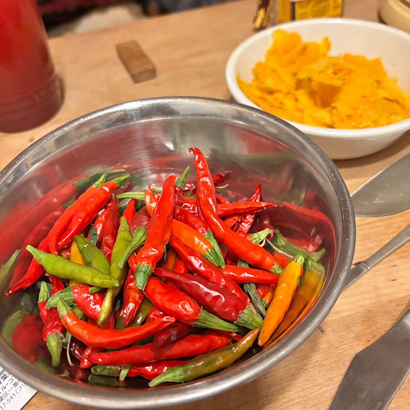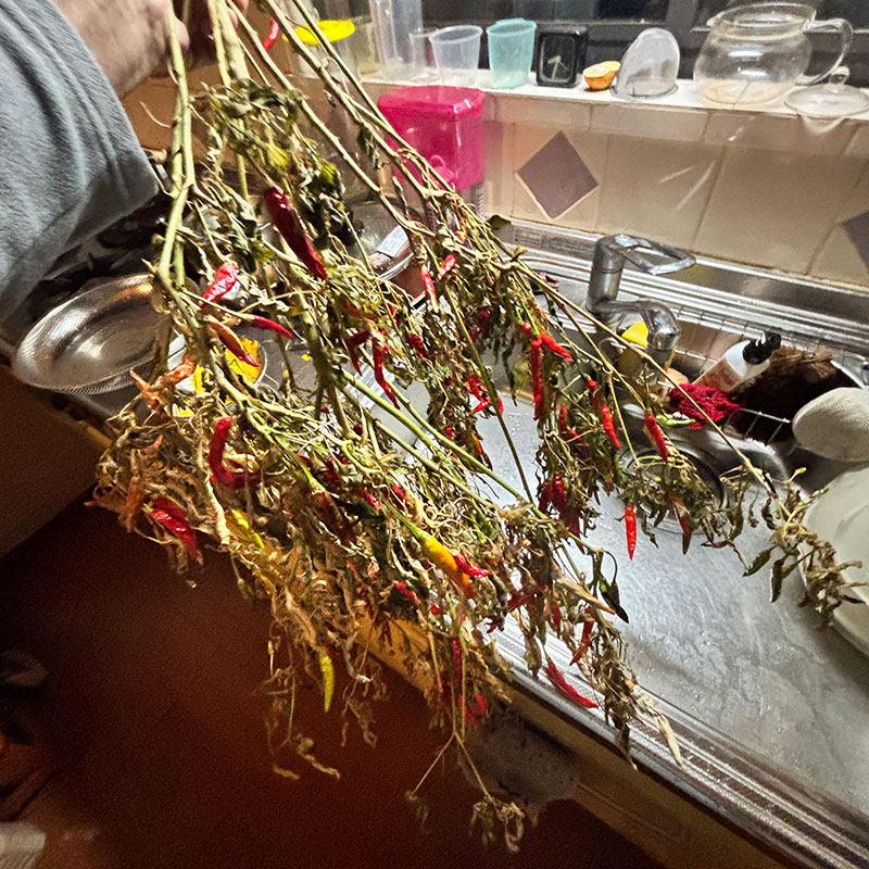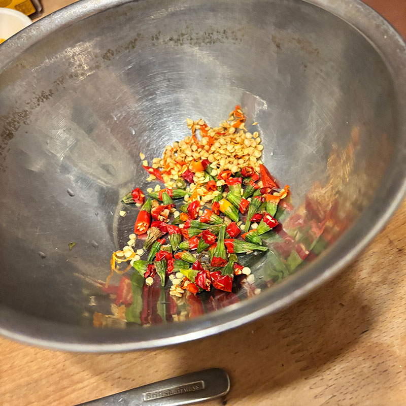 ただ玄関の軒先で干してた畑の唐辛子を使ったから