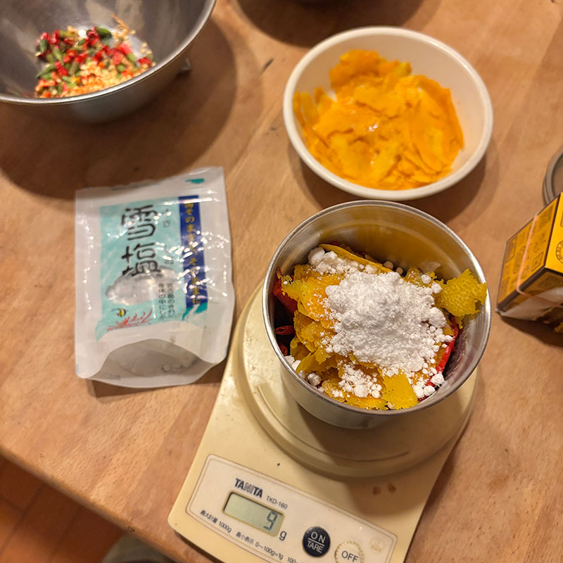 黄柚子と赤唐辛子で作る