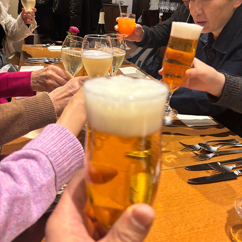 家族みんなで乾杯した帰り道も防寒着着ないで帰ったよ。でも、東京の人はみんな防寒着着てたけどねー・笑