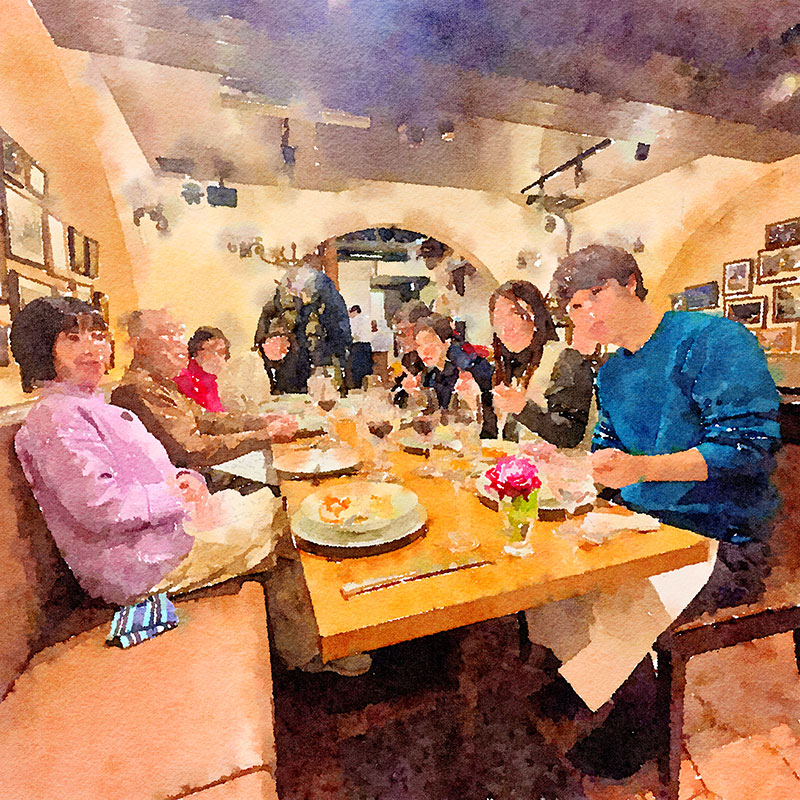家族みんなでイタリアンで乾杯!の前に姪っ子(妹)のピアノ弾き語りと妹のショパンのピアノ演奏のミニコンサート。