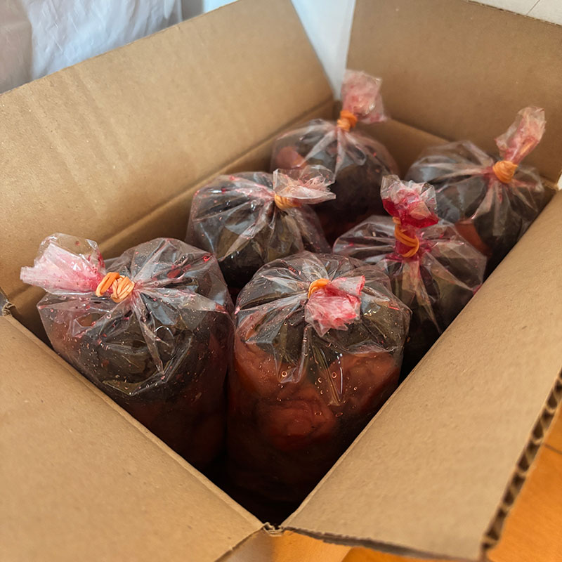 部落の名人の漬けた梅干し。この梅干し家族みんな大好きで待ってる。家の庭の梅もたくさん混ざってる。