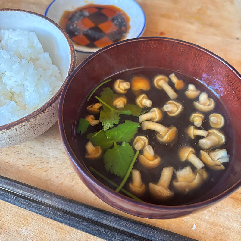 昆布水と昆布と鰹節で丁寧に出汁を取って作ったなめこのお吸い物。