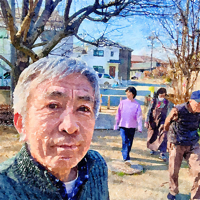 東北の屋外の雪と氷の中で石を彫っている僕はTシャツ一枚・笑!