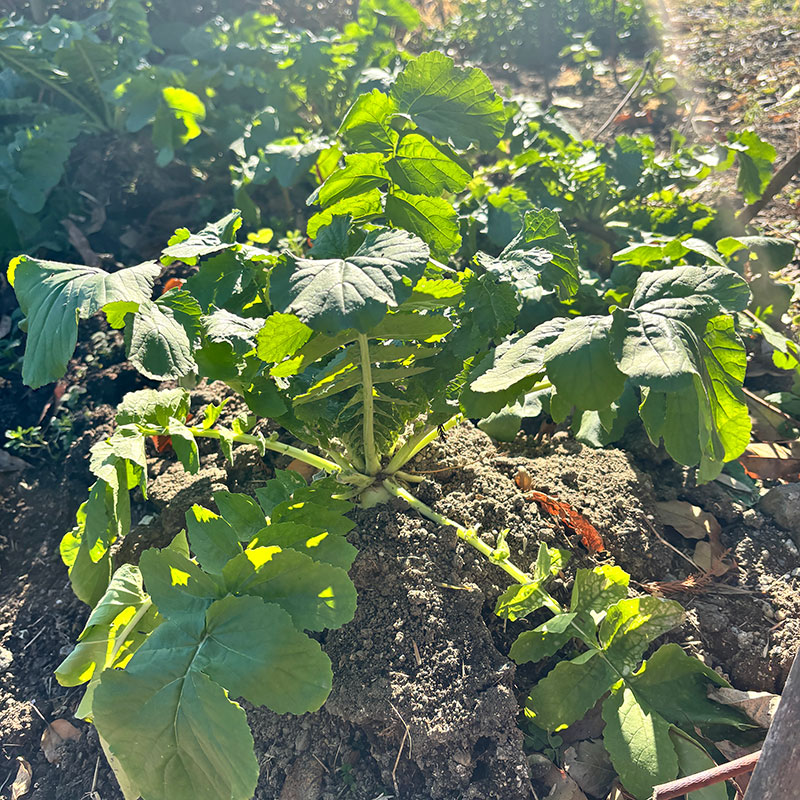 大根。実も葉も食べ始めてる