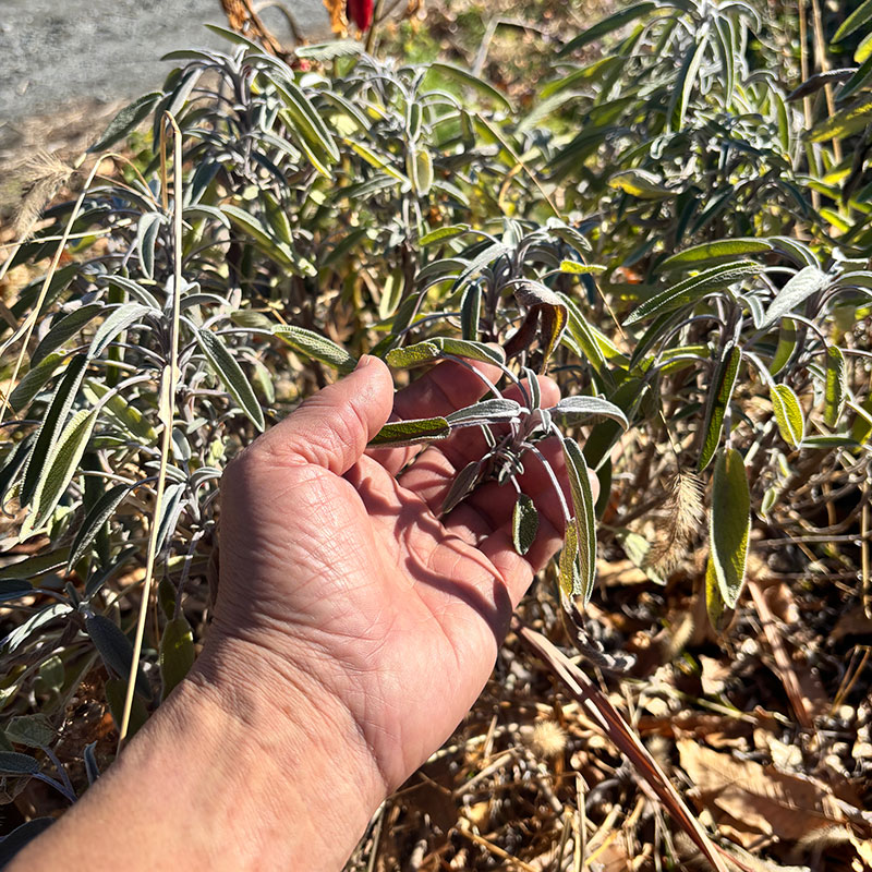 セージ。香りが強い。これも冬越しして春には復活する。