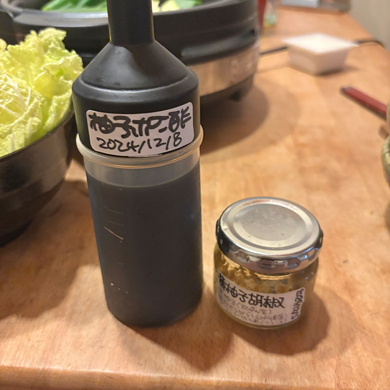 一年熟成した自家製のゆずポン酢と柚子胡椒で。