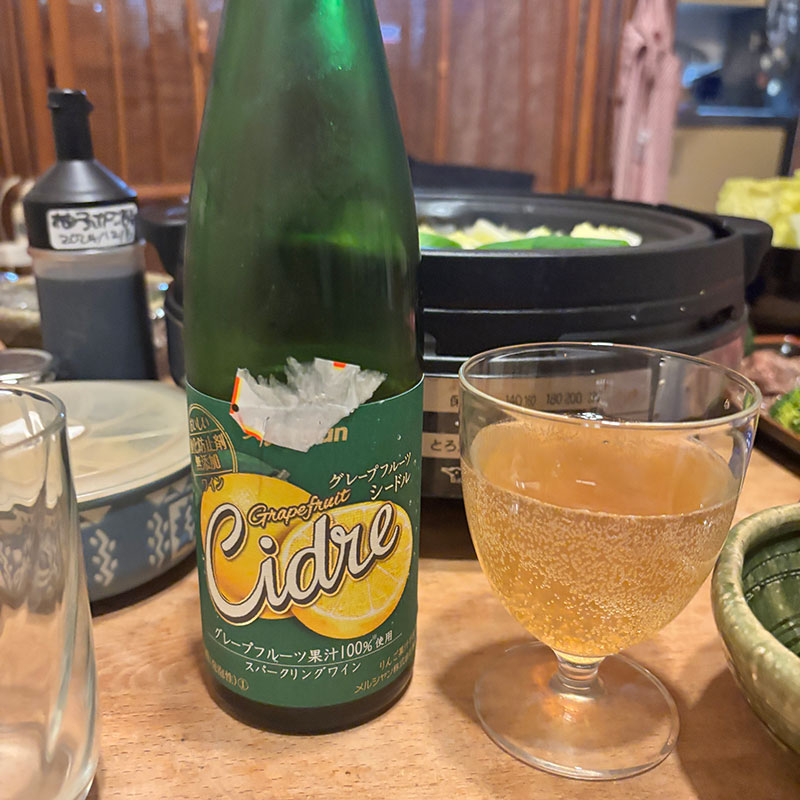 カミさんが見つけた極安のグレープフルーツ100%のシードルが変な甘さなくてスッキリしてて意外に美味しかった。