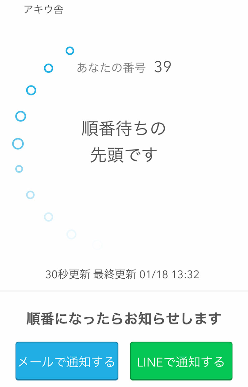 人気店なので待つのは必須。スマホであと何人待ちかリアルタイムで見られる。