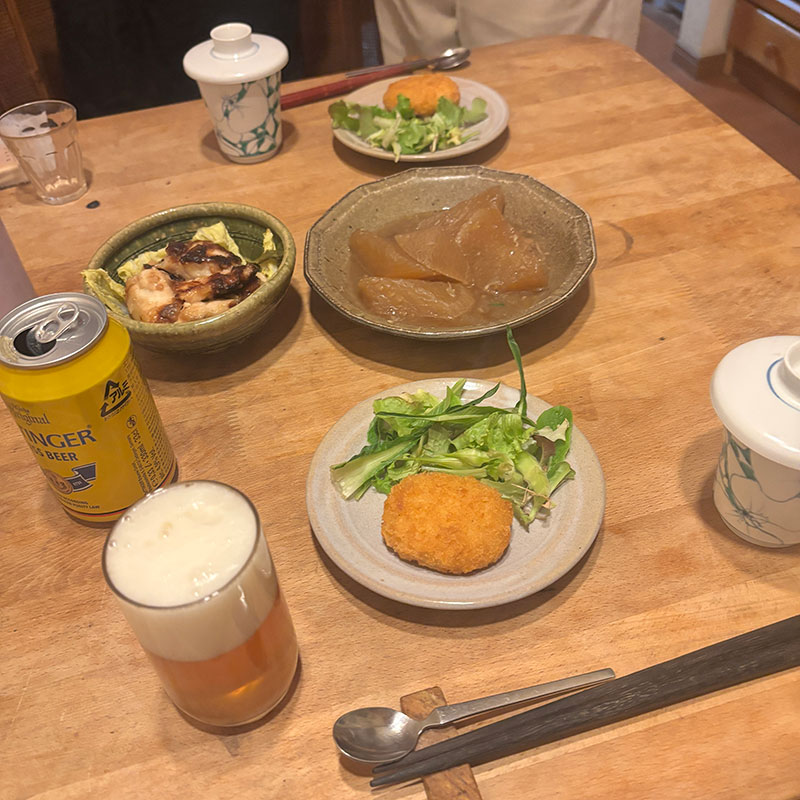 居酒屋我家、開店。大量に作り過ぎてまだまだたくさんある大根と豚小間の中華風煮込み。