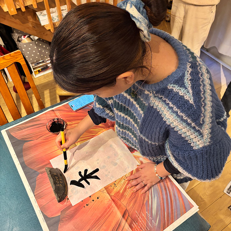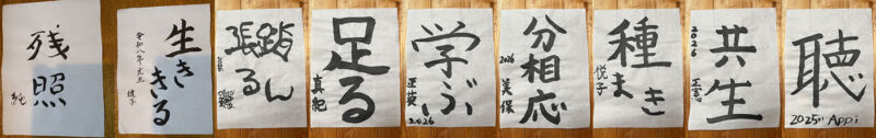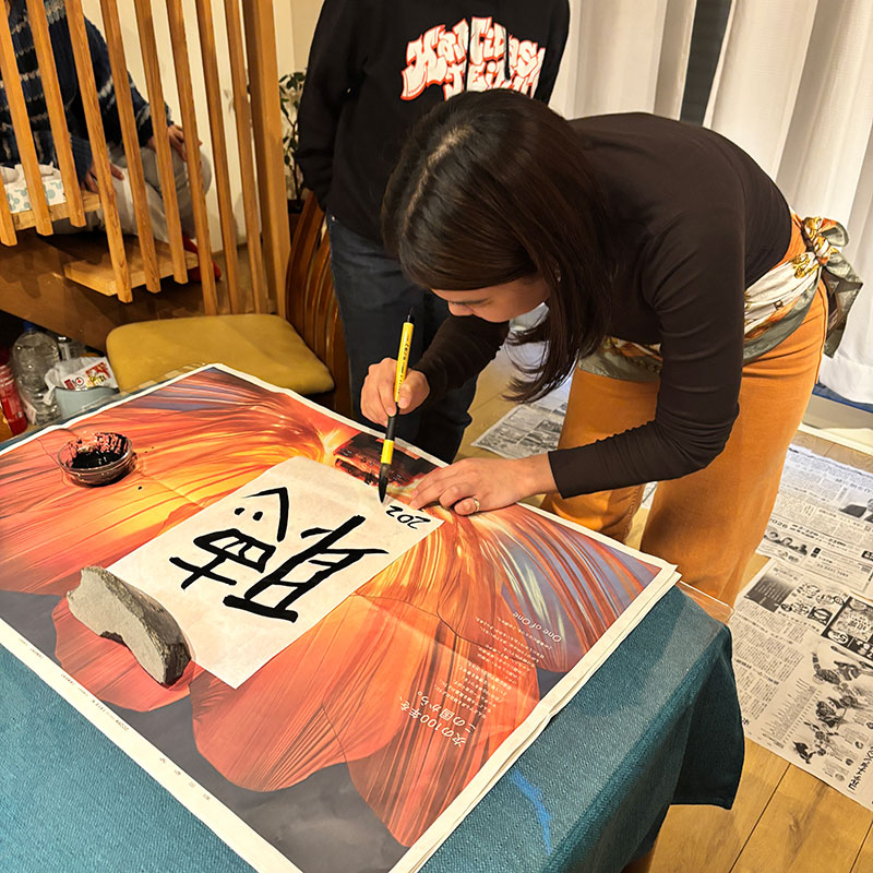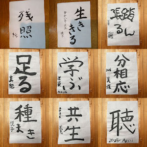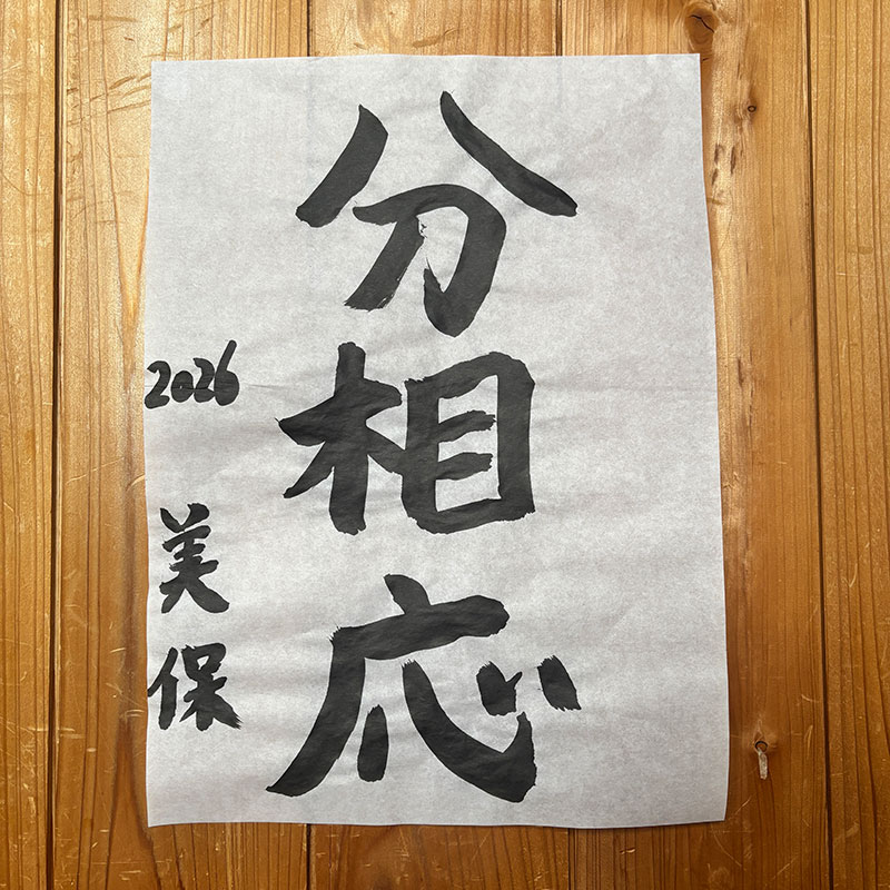 書いた言葉の持つ力”言霊”を自分に取り込み、一年を素晴らしいものにしようとする儀式でもある書き初め。平安時代の宮中行事が起源で、通常1月2日に行われるけどそれぞれの都合もあるのでみんなが一緒にできる今日開催!!