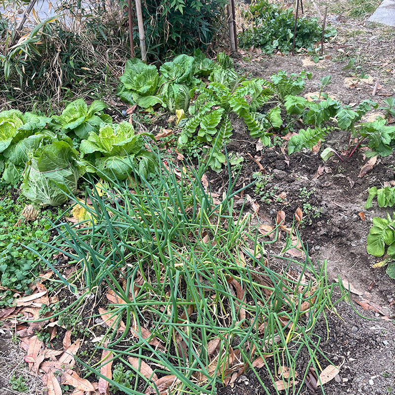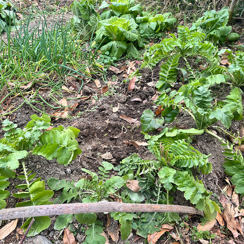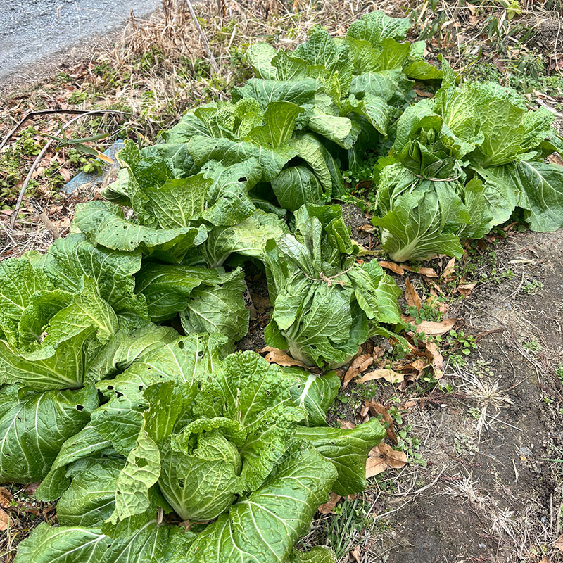 畑の白菜、大根、