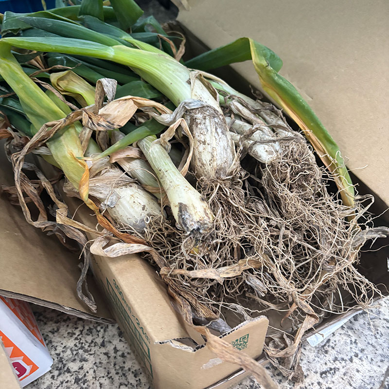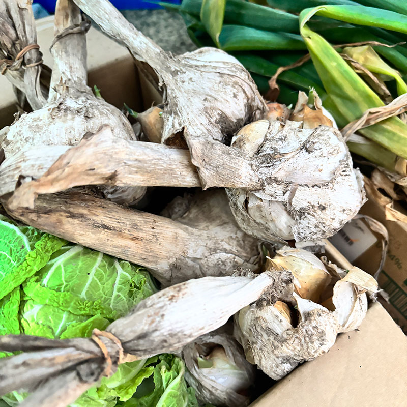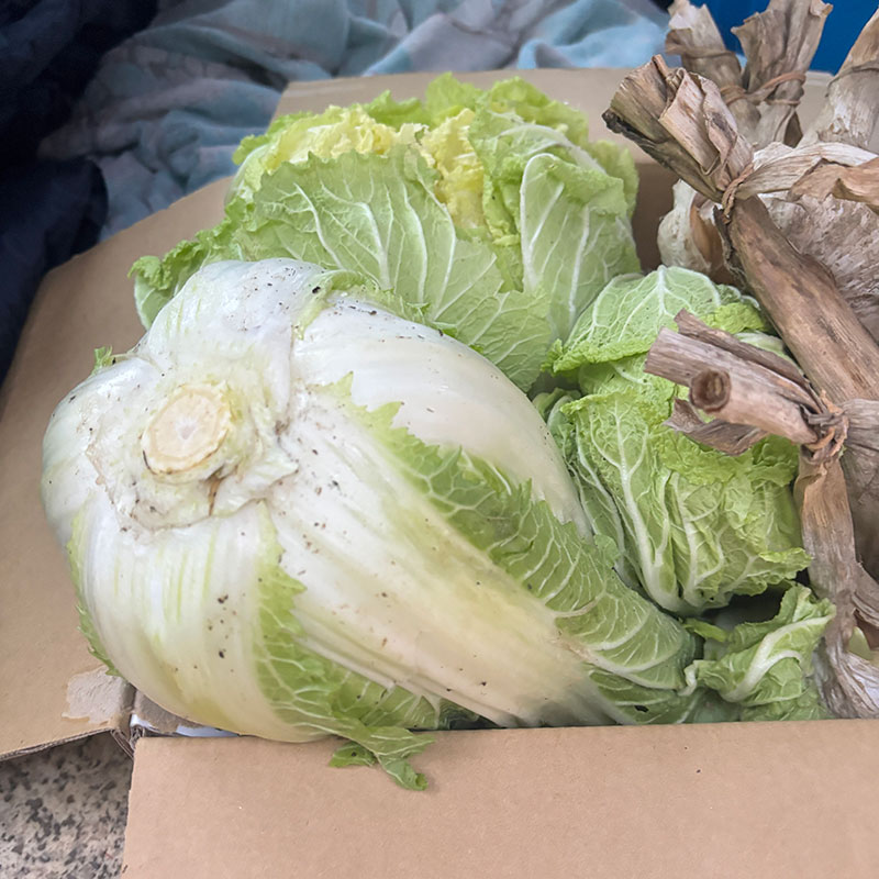 山のような白菜、長ネギ、にんにく。お店開けるよ。