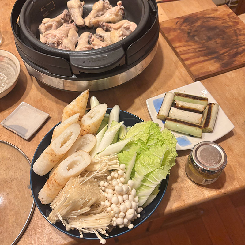 きりたんぽ鍋。週末と水曜日だけ開店するんだけど我が家は今日までお正月ということで。今日は手羽元で。