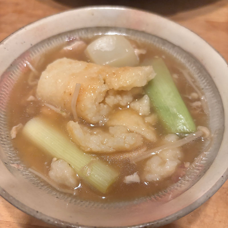 鶏の小間肉が少しずつスープにこぼれて味変していく。