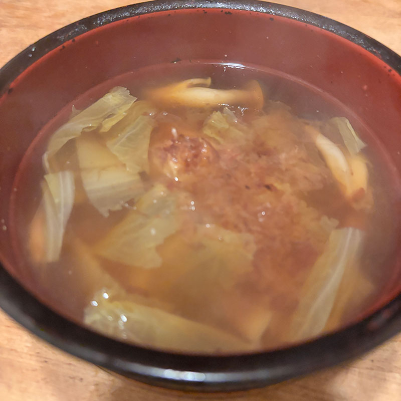 最後に鰹節振りかけて。懐かしい味、美味しい。