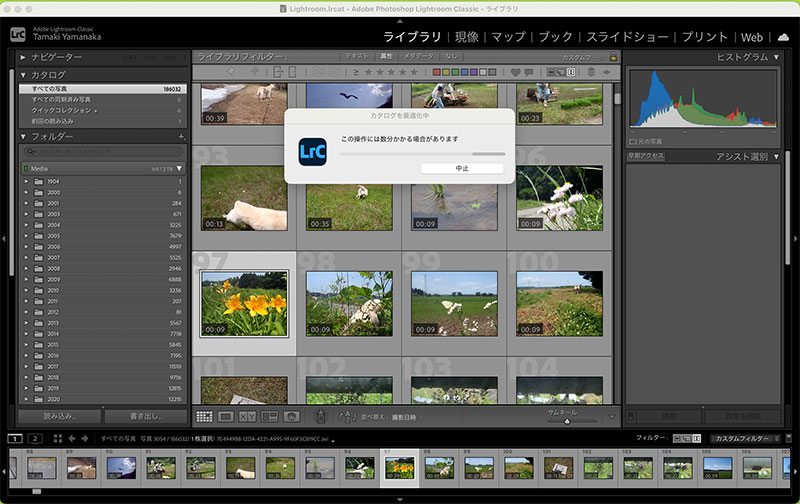だけど写真アプリはデータのアップデート中は全く使えないけどLightroom Classicなら読み込みを一時停止して必要な時に使える。できるだけ不要な写真と動画を削除しながら全て読み込む事ができた。現時点で写真と動画合わせて186,164ファイル。