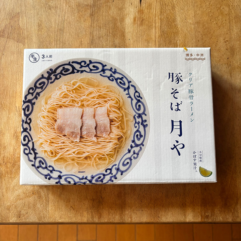 豚骨ラーメンなのに透明なスープ。途中で添付されてるかぼす果汁を入れて味変。