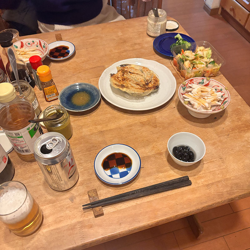 居酒屋我家、開店。カミさんが餃子作ってくれた。