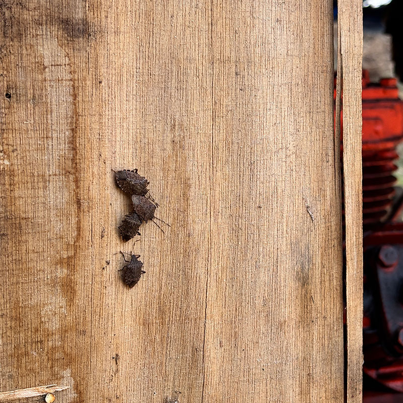 そして壁を剥がしていたら奴らが集まってた。彼らは少しでも暖かいところに密集して冬を越す。プレハブ小屋の中でもカレンダーの裏とか防寒着のポケットとか。。。