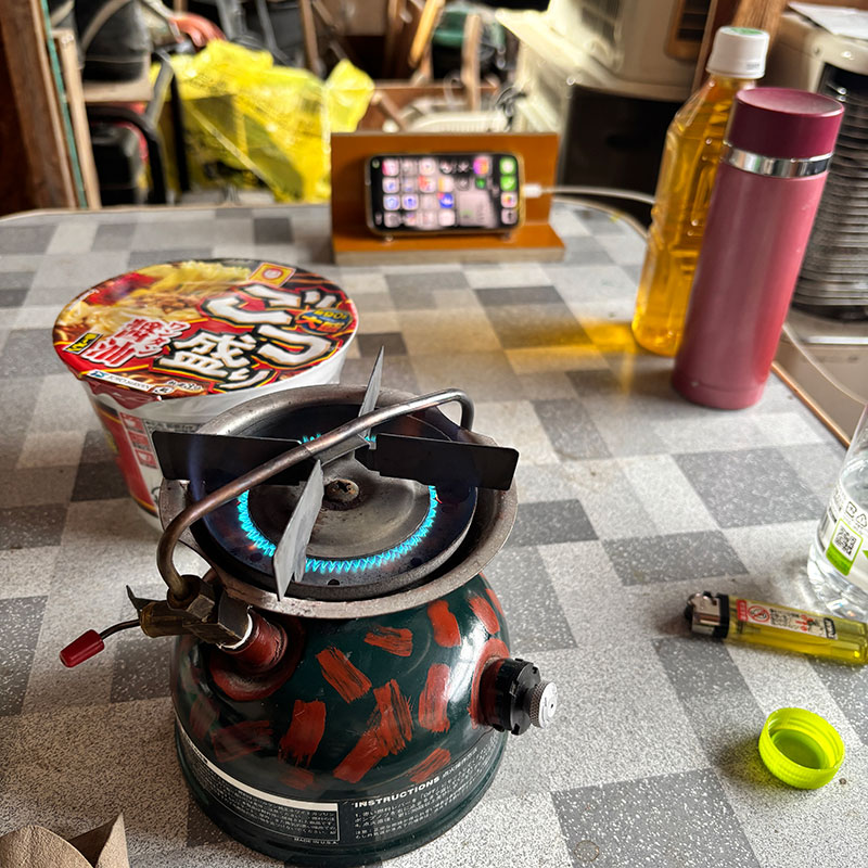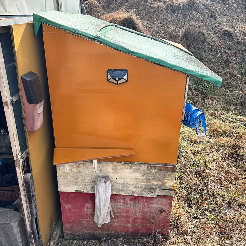 雨がたまらないように壁とは少し隙間を開けて。これでここに手荷物置いてすぐに鍵かけられるようになった。