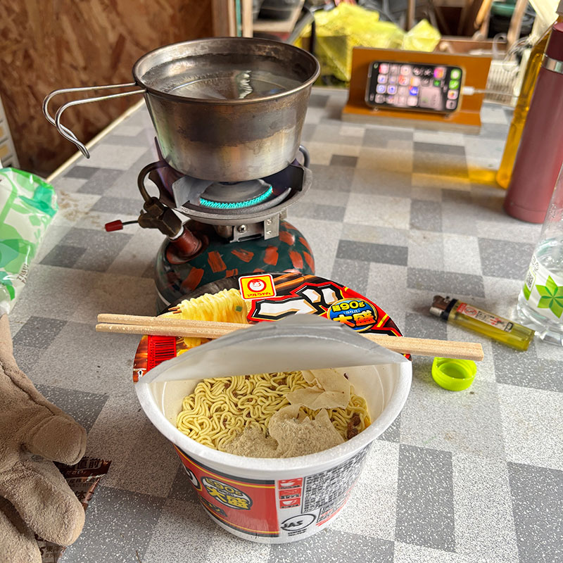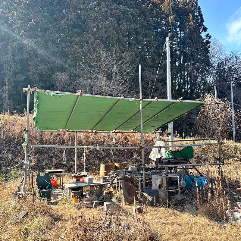 だけど水筒とか手荷物で手がふさがってるから一度小屋の隣の石テーブルに置きに行かなくてはいけなかったのでついでに棚もつけた。