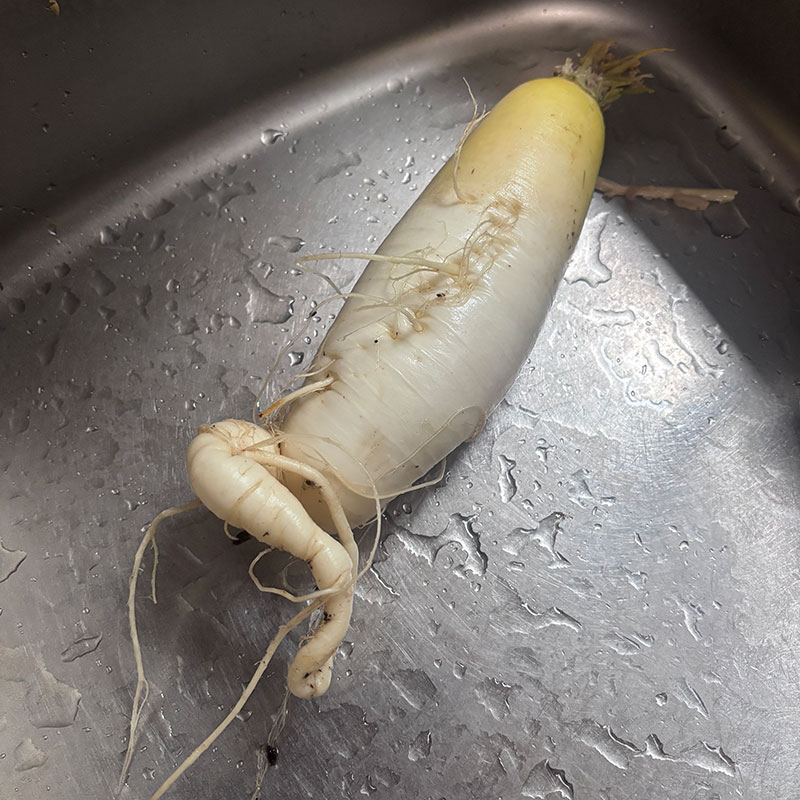 畑の大根抜いた。ずいぶん暴れてるw