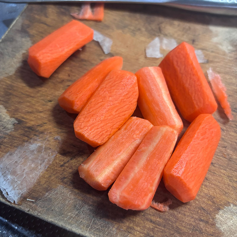 にんじんは面取りするした形が可愛くて好きなので鍋なんだけどグラッセの様に面取りした。