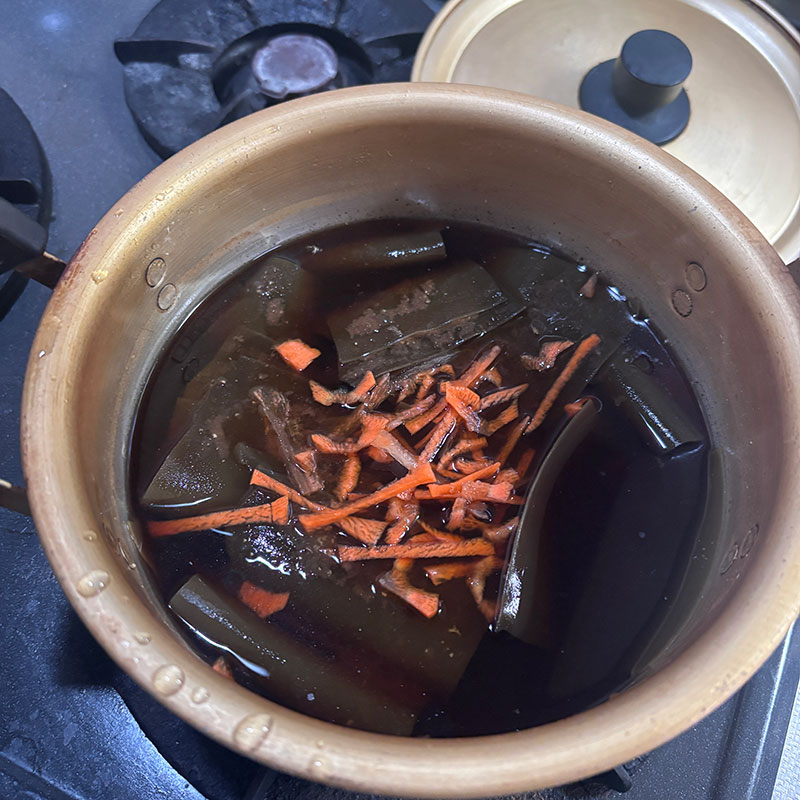 今宵はシンプルな鶏の水炊き。朝、昆布水に昆布と