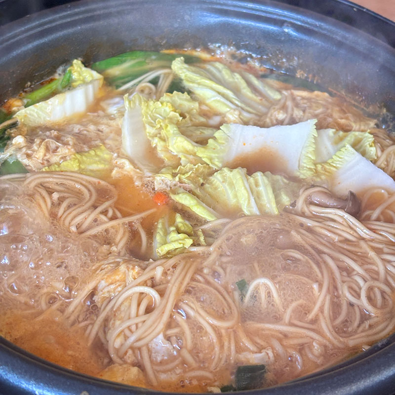昨日のキムチ鍋の残りでマルタイラーメン。