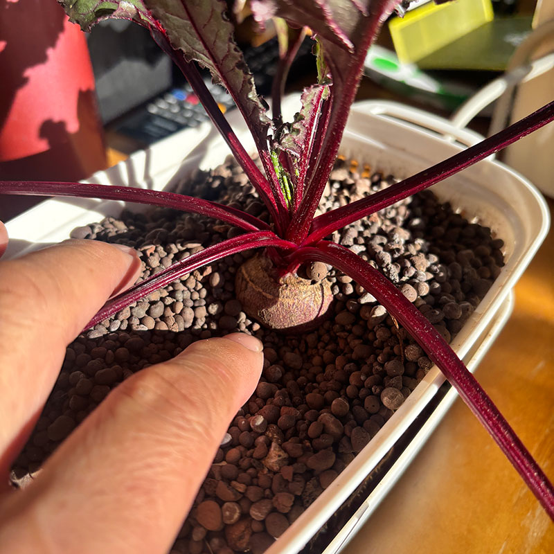 100円ショップのハイドロボールと豆苗プランターで育ててるビーツ。もうすぐ食べられるくらいに育ったよ!!