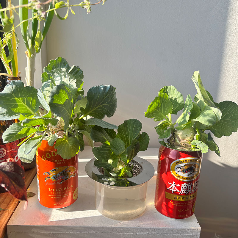 冷蔵庫に入れる時に切り取った芯を水栽培してる。