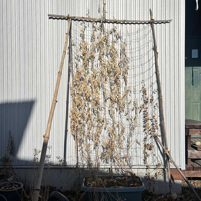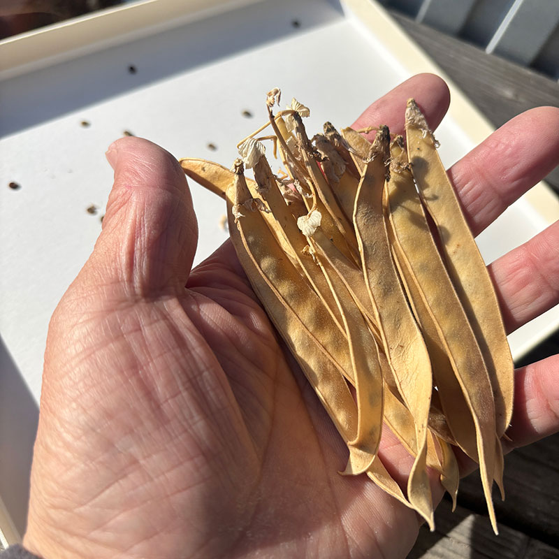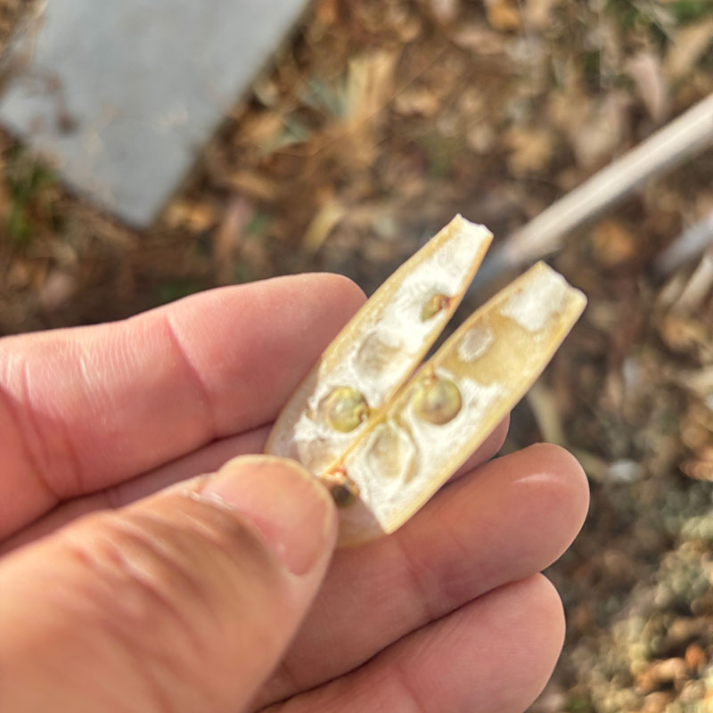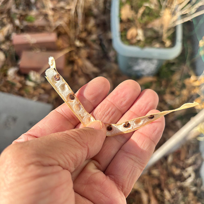 秋にさやを開いてみても種が緑で濡れてるのが多かったのでずっと放っておいた。
