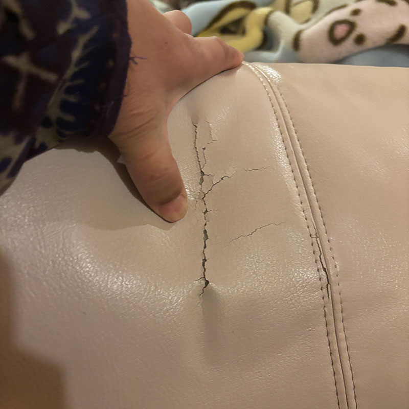 昼寝の時に頭を乗せてる肘掛けは穴が開き始めた。